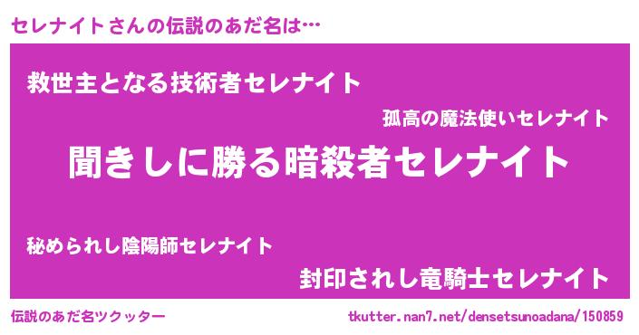 | 男性向けラノベタイトル風あだ名 | 『緋弾のセレナイト』 |