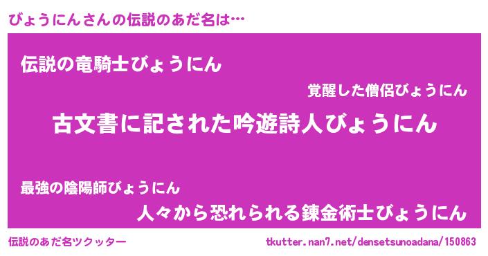 | 意味不明あだ名 | 『永久保存びょうにん』『自称びょうにん』 |