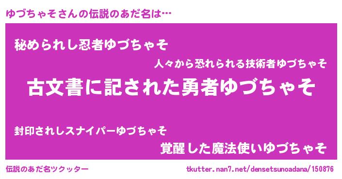 | ヒーロー風カッコイイあだ名 | 『仮面ユヅダー』『ネオユヅチャソ』 |