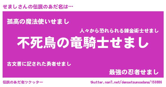 | ヒーロー風カッコイイあだ名 | 『サイバー戦士セマシ』『仮面セマダー』 |