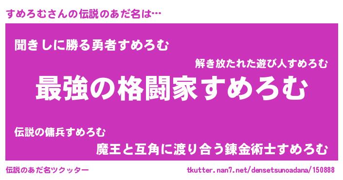 | ヒーロー風カッコイイあだ名 | 『ウルトラすめろむマン』『ネオスメロム』 |