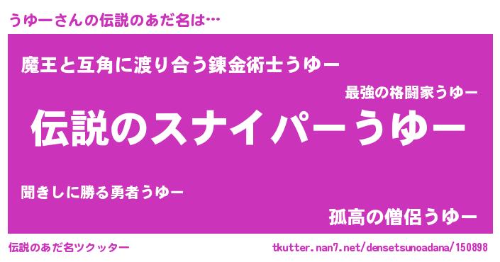 | 胡散臭い通販商品みたいなあだ名 | 『必ず成功する霊験あらたかなお札…その名も「うゆー」』 |