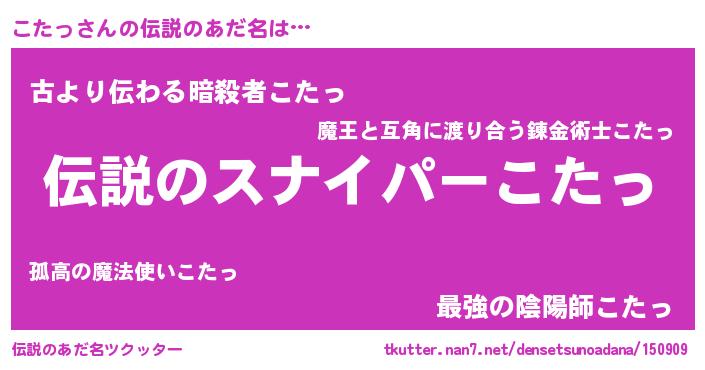 | ヒーロー風カッコイイあだ名 | 『スーパーコタッ』『ネオコタッ』 |