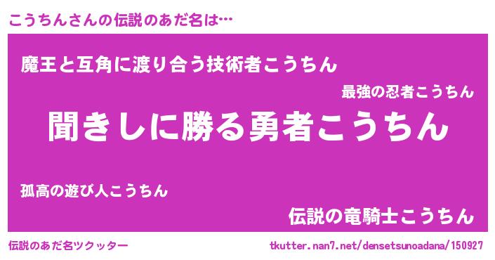 | 意味不明あだ名 | 『永久保存こうちん』『自称こうちん』 |