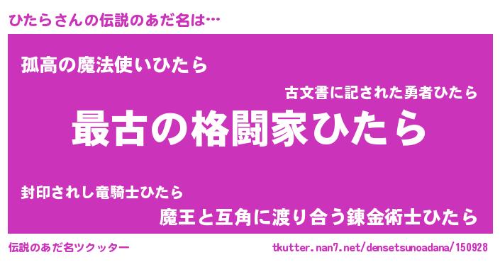 | ヒーロー風カッコイイあだ名 | 『ウルトラひたらマン』『仮面ヒタダー』 |