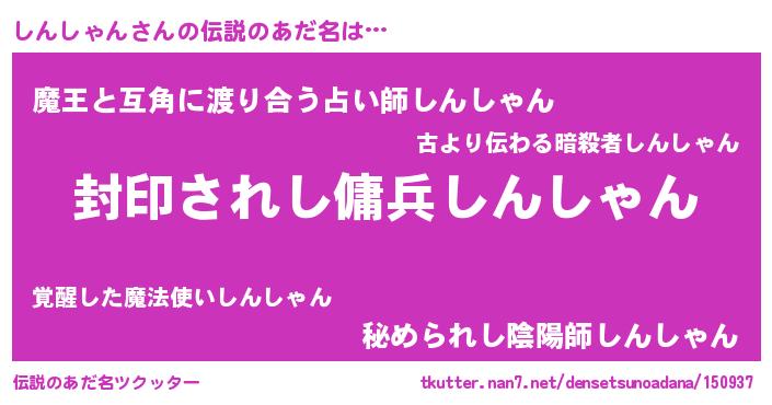 | ヒーロー風カッコイイあだ名 | 『スーパーシンシャン』『仮面シンダー』 |