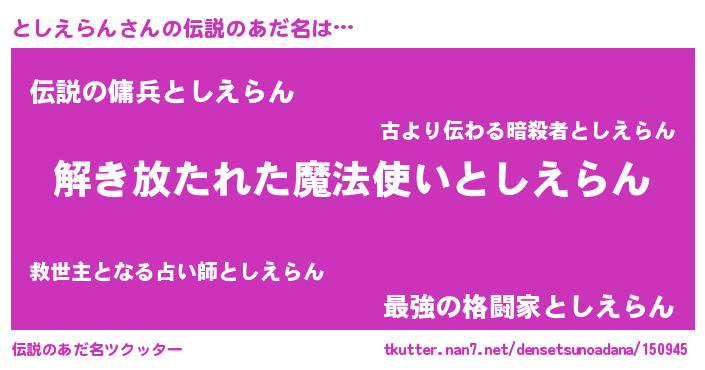 | ヒーロー風カッコイイあだ名 | 『幻影騎士トシ』『スーパートシエラン』 |
