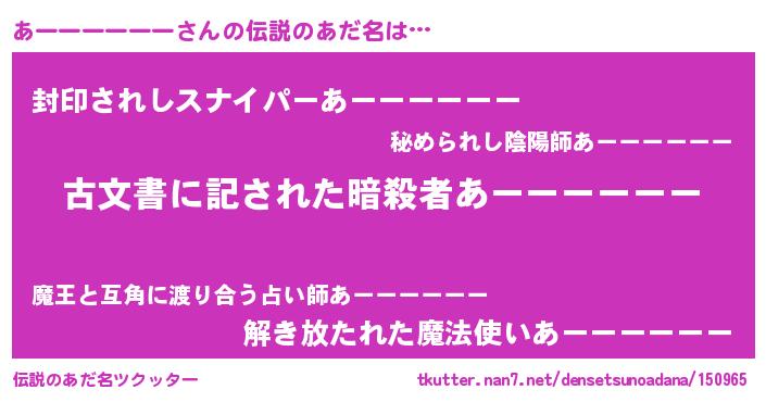 | 男性向けラノベタイトル風あだ名 | 『この素晴らしい世界にあーーーーーーを!』 |