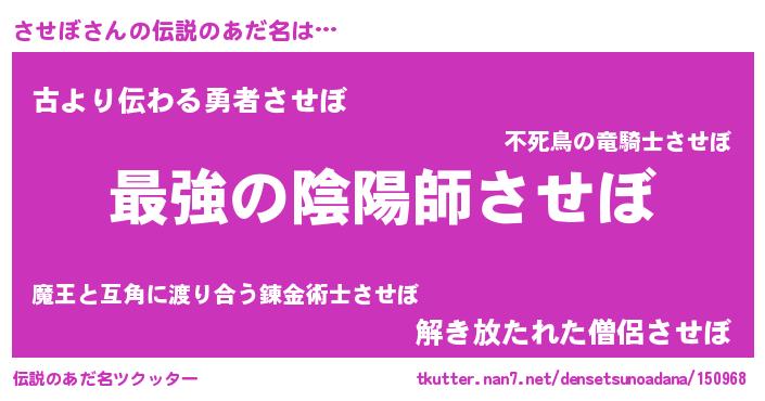 | 意味不明あだ名 | 『させぼフォーエバー』『自称させぼ』 |