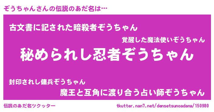 | 意味不明あだ名 | 『ぞうちゃんフォーエバー』 |
