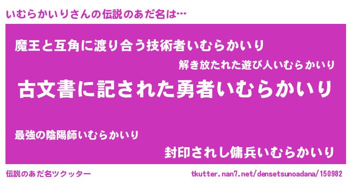 | ヒーロー風カッコイイあだ名 | 『ネオイムラカイリ』『仮面イムダー』 |