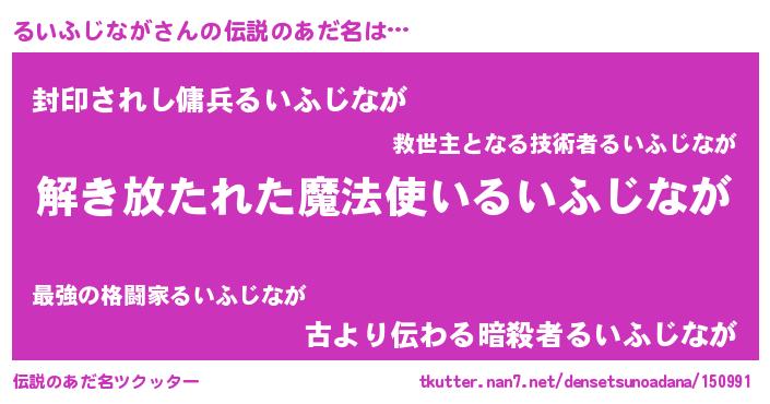 | 女子向けラノベタイトル風あだ名 | 『るいふじながの卵を拾いまして』 |