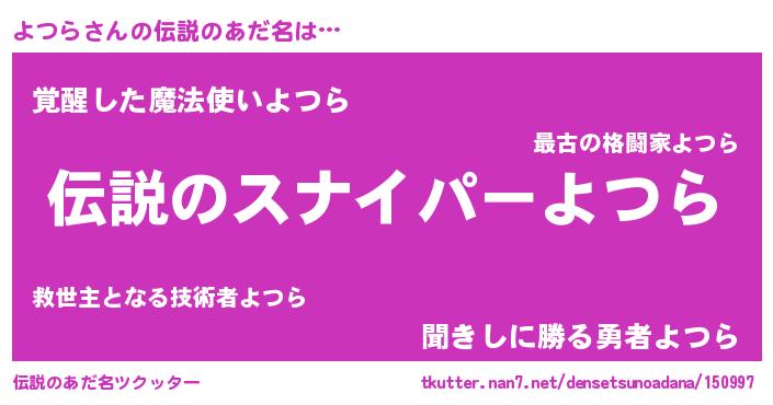 | 胡散臭い通販商品みたいなあだ名 | 『必ず成功する霊験あらたかなお札…その名も「よつら」』 |