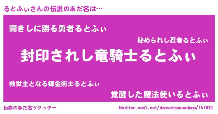 | 男性向けラノベタイトル風あだ名 | 『この素晴らしい世界にるとふぃを!』 |
