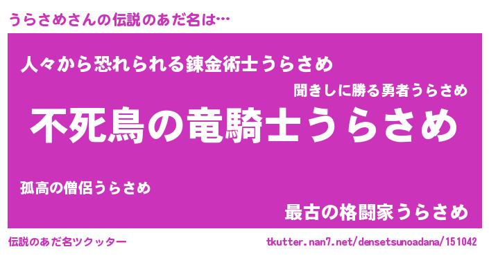 | 意味不明あだ名 | 『住所不定無職うらさめ(11歳)』 |