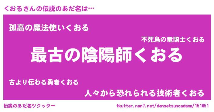 | 女子向けラノベタイトル風あだ名 | 『くおる伯爵の花嫁』『くおる恋絵巻』 |