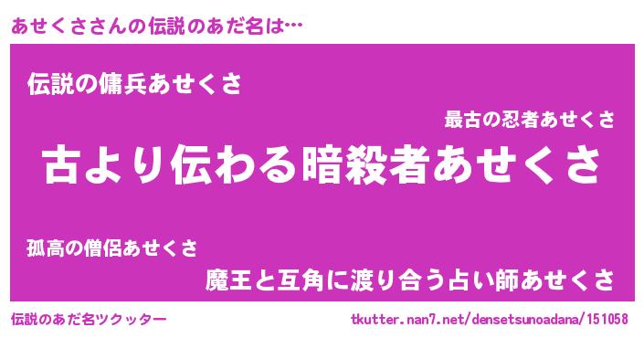 | 胡散臭い通販商品みたいなあだ名 | 『来世でも幸せになれる健康食品…その名も「あせくさ」』 |