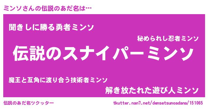 | 男性向けラノベタイトル風あだ名 | 『ミンソの憂鬱』『魔法科高校のミンソ』 |