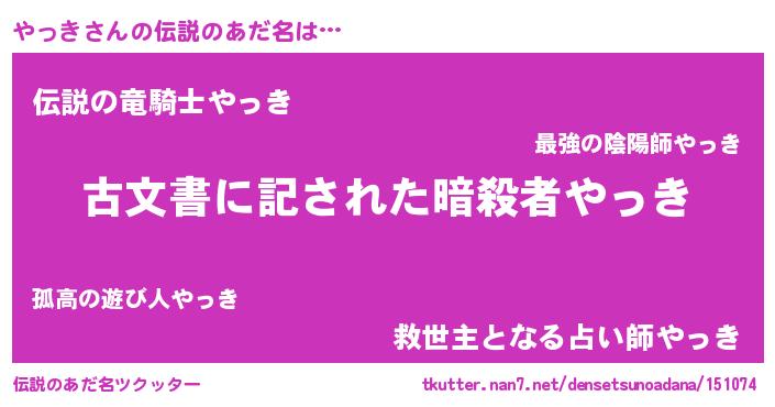 | ヒーロー風カッコイイあだ名 | 『ネオヤッキ』『仮面ヤッダー』 |