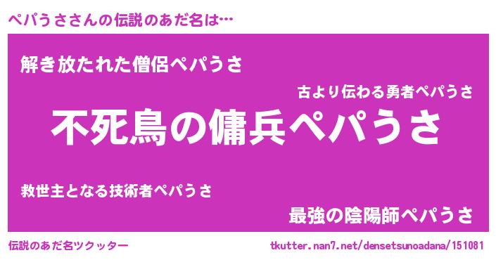 | 胡散臭い通販商品みたいなあだ名 | 『モテモテ間違いなし水晶球…その名も「ペパうさ」』 |