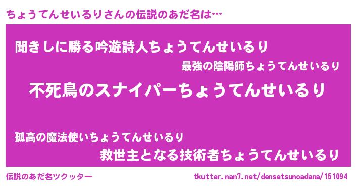 | ヒーロー風カッコイイあだ名 | 『スーパーチョウテンセイルリ』 |