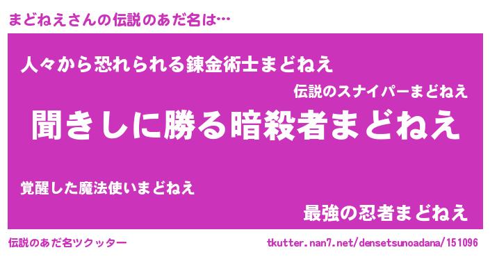 | 意味不明あだ名 | 『永久保存まどねえ』 |