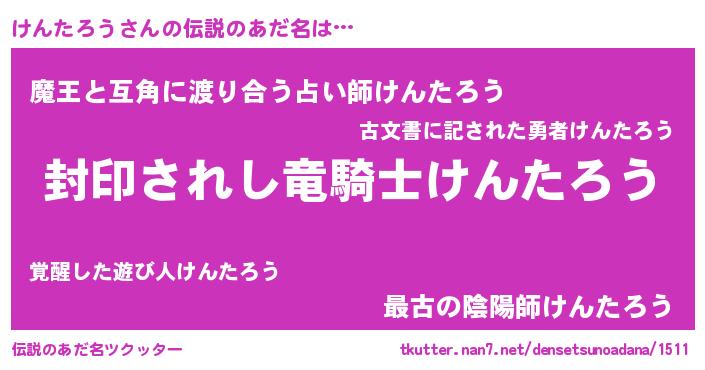 | ヒーロー風カッコイイあだ名 | 『スーパーケンタロウ』『仮面ケンダー』 |