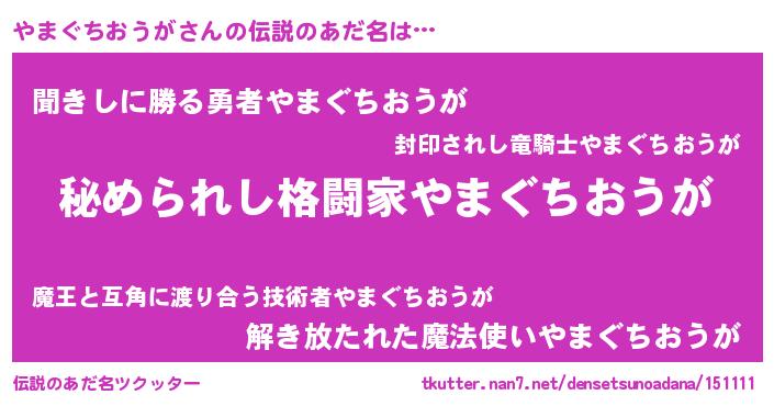 | 意味不明あだ名 | 『やまぐちおうがフォーエバー』 |