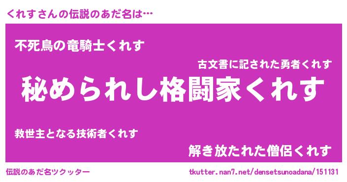 | ヒーロー風カッコイイあだ名 | 『ウルトラくれすマン』『仮面クレダー』 |
