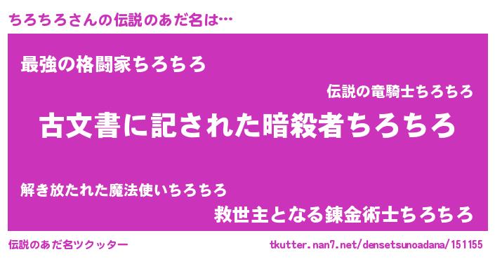 | 意味不明あだ名 | 『永久保存ちろちろ』『自称ちろちろ』 |