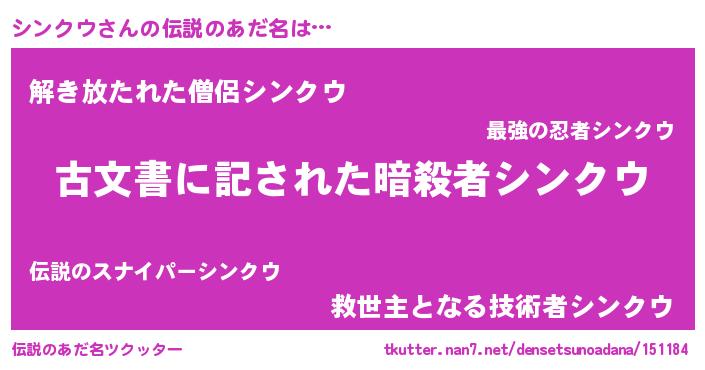 | ヒーロー風カッコイイあだ名 | 『ネオシンクウ』『暗黒騎士シン』 |