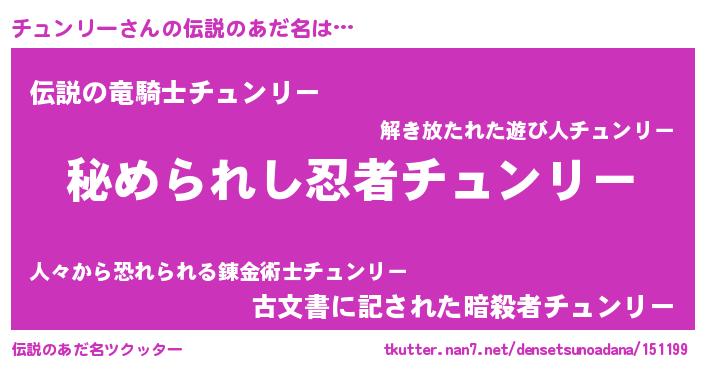| 意味不明あだ名 | 『チュンリーフォーエバー』 |