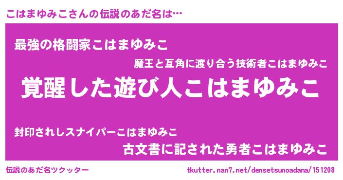 | 女子向けラノベタイトル風あだ名 | 『こはまゆみこの玉の輿計画!』 |