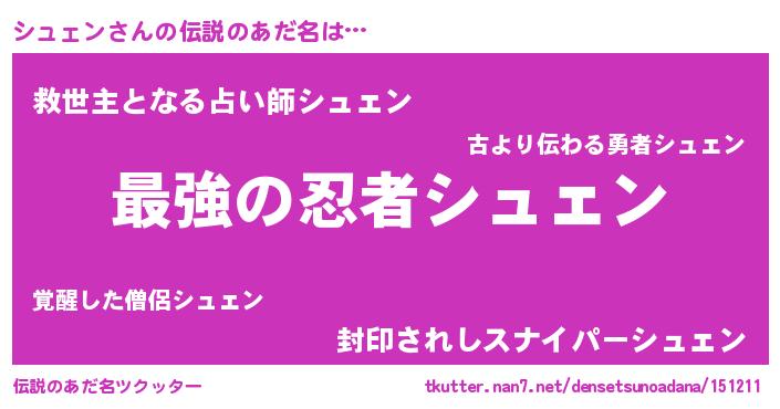 | ヒーロー風カッコイイあだ名 | 『ウルトラシュェンマン』『仮面シュダー』 |