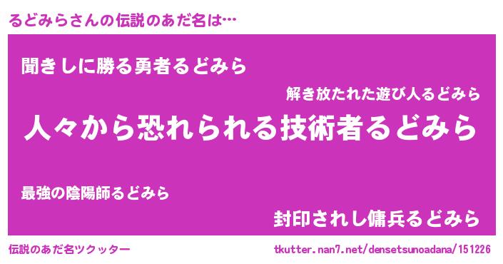 | 意味不明あだ名 | 『めかぶ科るどみら属』『自称るどみら』 |