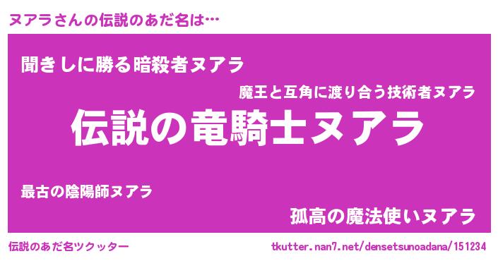 | ヒーロー風カッコイイあだ名 | 『超時空戦士ヌアラ』『スーパーヌアラ』 |
