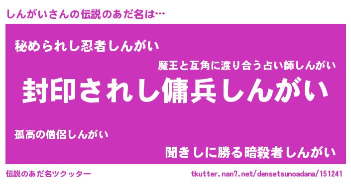 | 胡散臭い通販商品みたいなあだ名 | 『億万長者になれる水晶球…その名も「しんがい」』 |