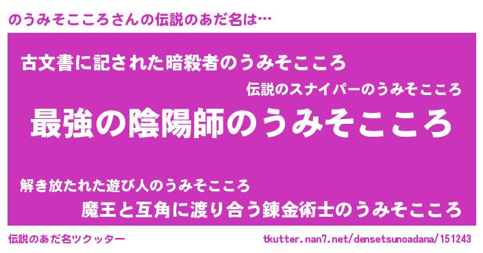 | ヒーロー風カッコイイあだ名 | 『ウルトラのうみそこころマン』 |