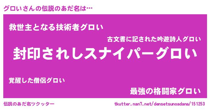 | ヒーロー風カッコイイあだ名 | 『スーパーグロイ』『天空の使者グロい』 |