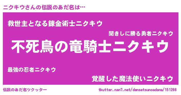 | 女子向けラノベタイトル風あだ名 | 『闇のニクキウ』『死神ニクキウの再婚』 |