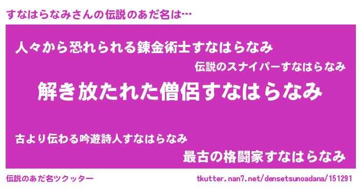 | 意味不明あだ名 | 『とにかく怪しいすなはらなみ』 |