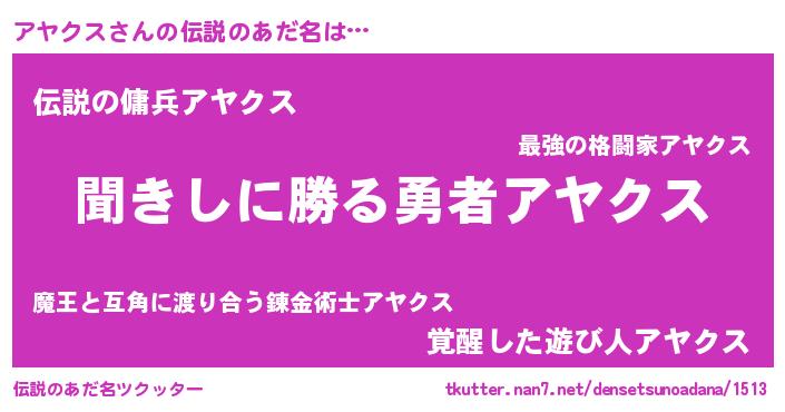 | 意味不明あだ名 | 『住所不定無職アヤクス(95歳)』 |