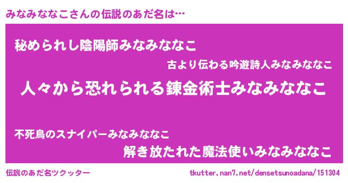 | ヒーロー風カッコイイあだ名 | 『友情の使者みなみななこ』 |