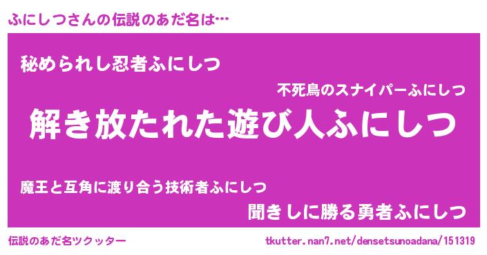 | ヒーロー風カッコイイあだ名 | 『最強戦士フニシツ』『魔戒騎士フニ』 |