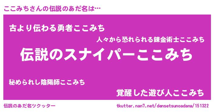 | ヒーロー風カッコイイあだ名 | 『仮面ココダー』『スーパーココミチ』 |
