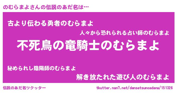 | 男性向けラノベタイトル風あだ名 | 『のむらまよに滅ぼされるだけの簡単なお仕事です』 |