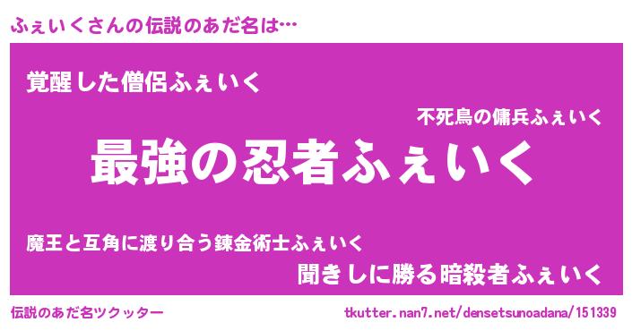 | 男性向けラノベタイトル風あだ名 | 『Re:ふぇいくから始める異世界生活』 |