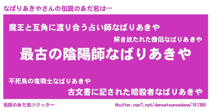 | 意味不明あだ名 | 『自称なばりあきや』 |