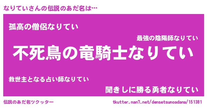 | ファンタジー風あだ名 | 『ナリフェル』『ファントムナリス』 |