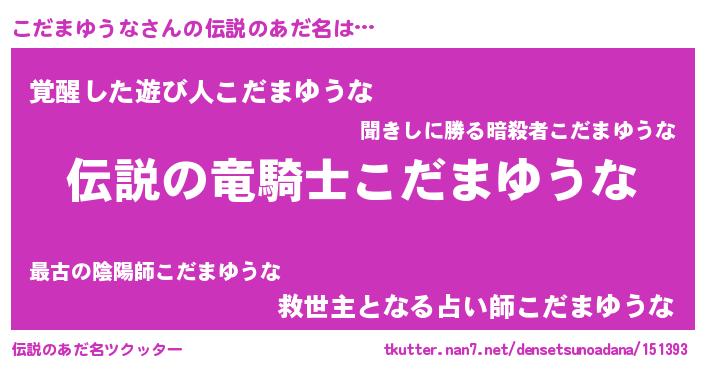 | ヒーロー風カッコイイあだ名 | 『スーパーコダマユウナ』『天弓騎士コダ』 |